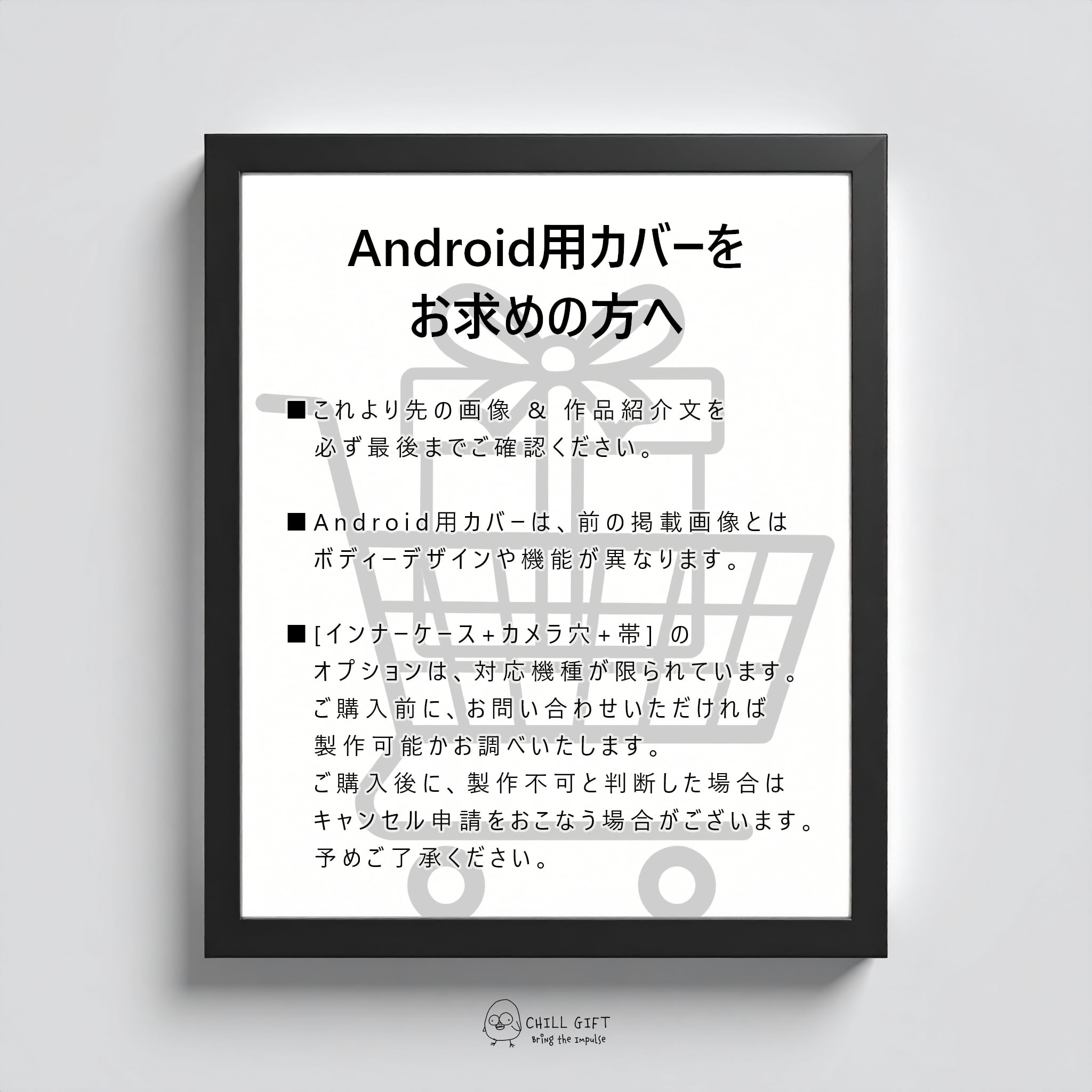 お届けするのは、手帳型カバー本体のみです。