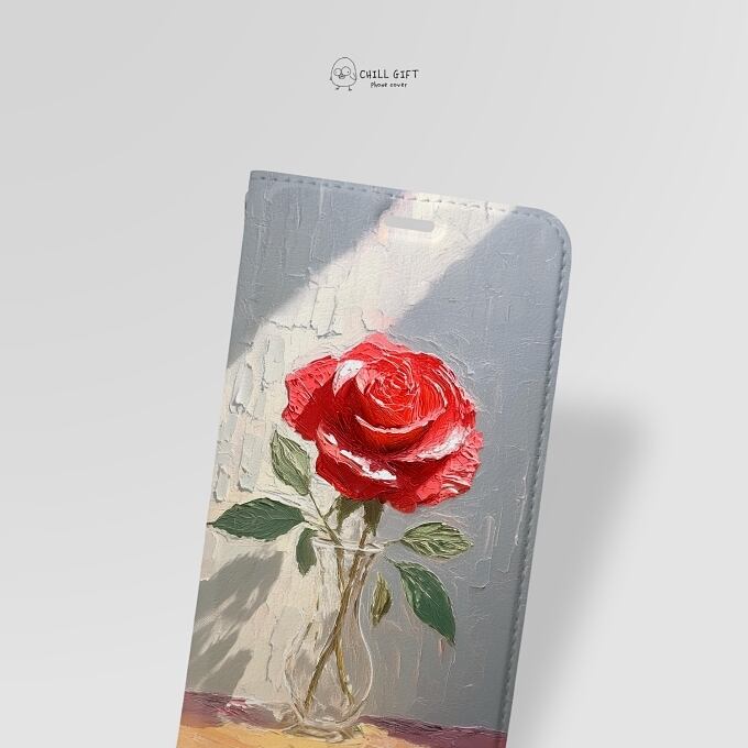手のひらの中の絵画展~レッドローズ~ 選べる帯なしorあり 手帳型スマホケース・カバー iPhone Android 多機種対応 赤薔薇