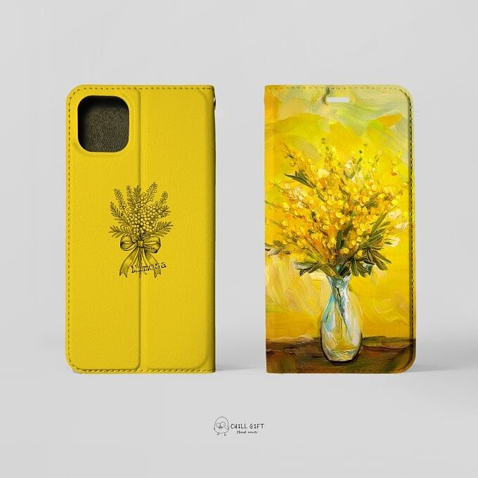 手のひらの中の絵画展~ミモザ~ 選べる帯なしorあり 手帳型スマホケース・カバー iPhone Android 多機種対応