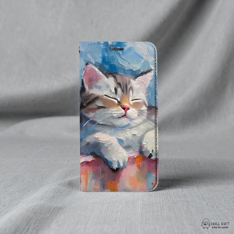手のひらの中の絵画展~ふとんのなかのねこ~ 選べる帯なしorあり 手帳型スマホケース・カバー iPhone Android 多機種対応