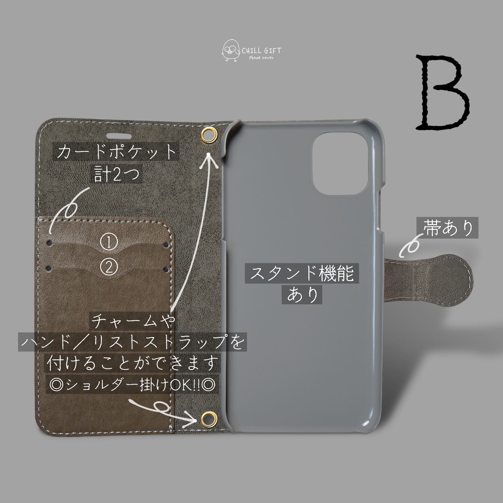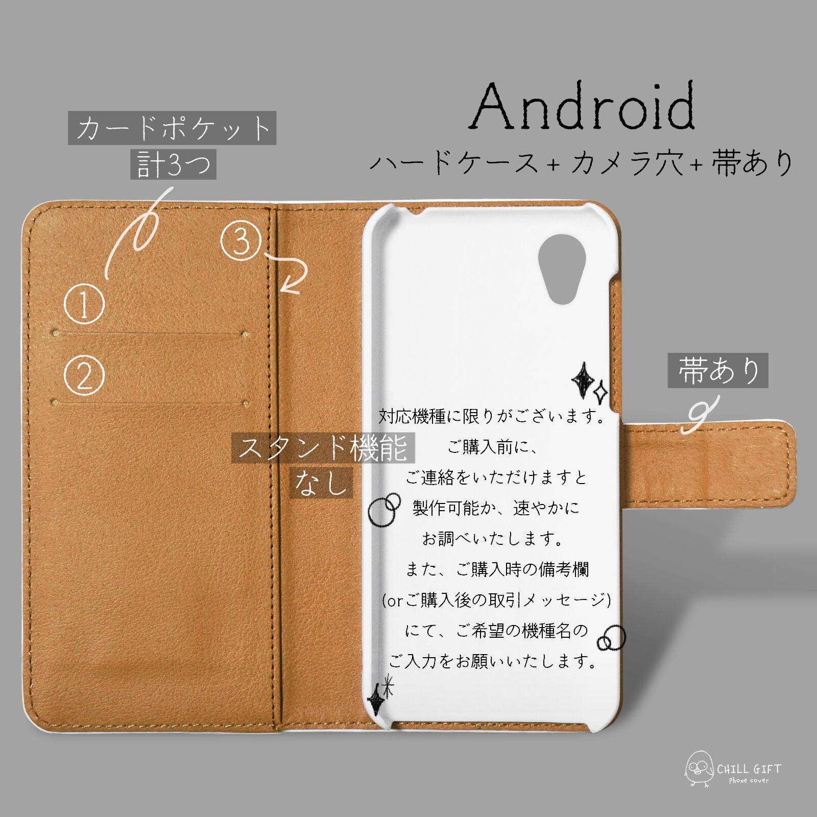 お届けするのは、手帳型カバー本体のみです。