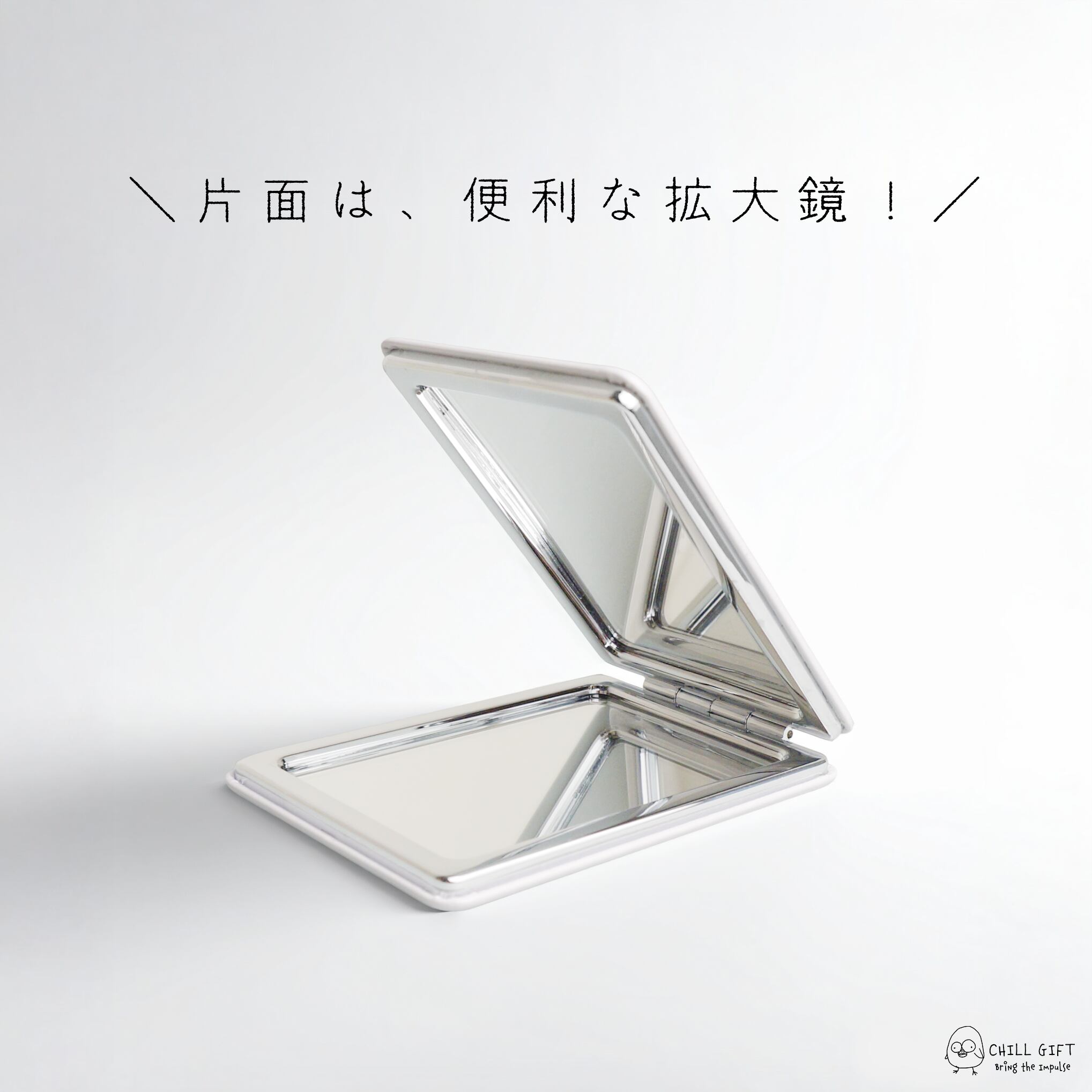 二つ折りのミラーを開くと、片面は通常の鏡、もう片面は細部までしっかり見える拡大鏡。